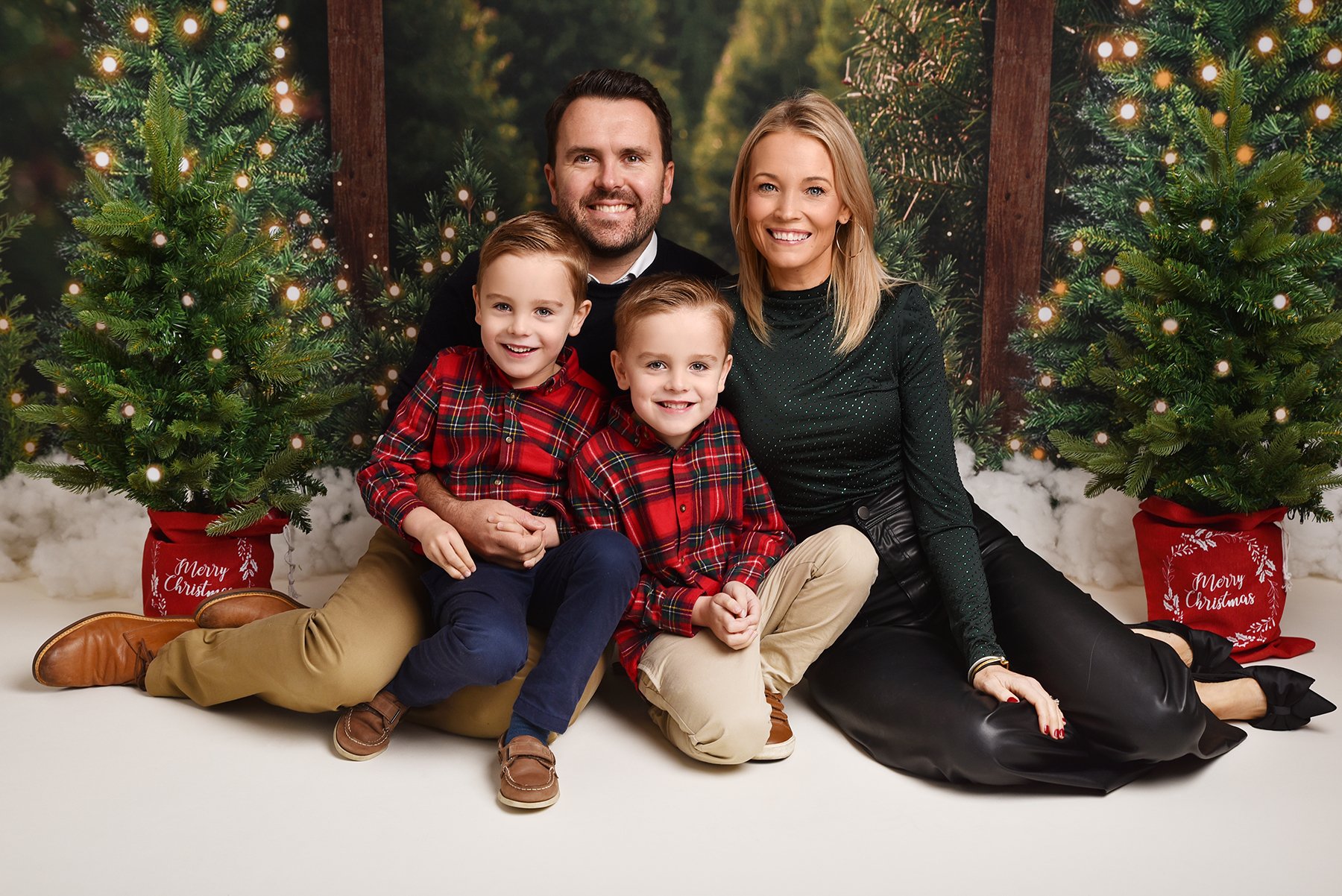 Babies and Children aged 4 months plus who can sit unaided or comfortable on their front. Our studio is small when we have a couple of set ups it can be a tight squeeze so please dont bring extra people to the session. We can only do a family portrait on the Rustic evergreen set. Siblings can of course all share a photo!